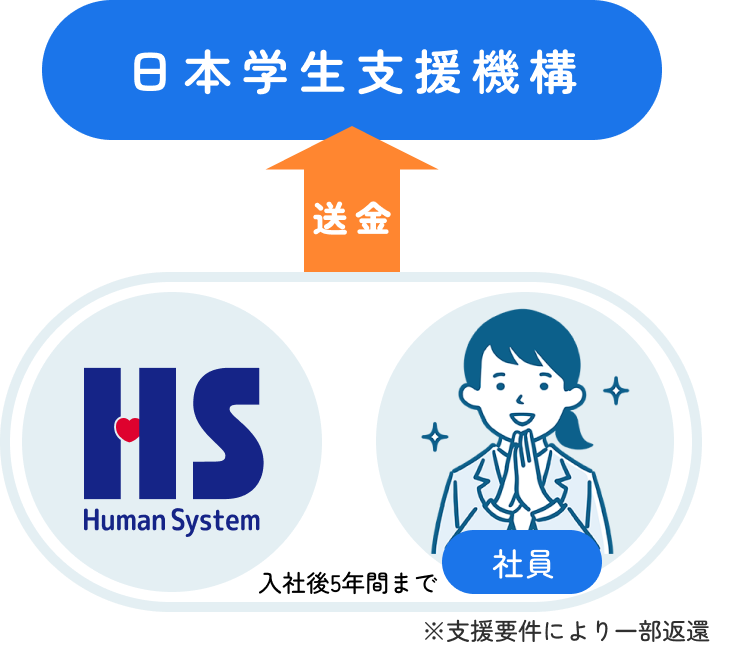 通常、奨学金の返還義務を負う社員が自ら日本学生支援機構に毎月振り込みをして返還しますが、この制度では社員に代わって会社が直接機構に振り込みを行います。